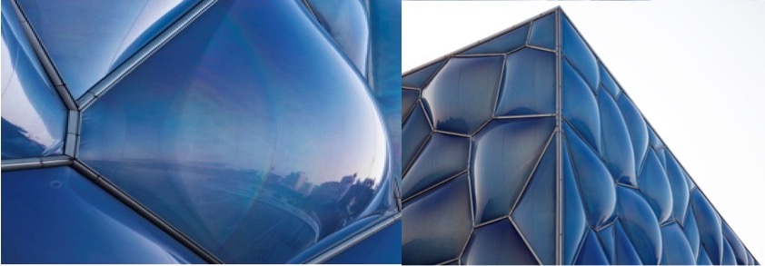 ETFE 膜為現(xiàn)代建筑幕墻和屋頂提供了一個(gè)嶄新的面材。由這種膜材制成的屋面和墻體,質(zhì)量輕,只有同等大小的玻璃質(zhì)量的1%;韌性好、抗拉強(qiáng)度高、不易被撕裂,延展性大于400%;耐候性和耐化學(xué)腐蝕性強(qiáng),熔融溫度高達(dá)200℃,并且不會(huì)自燃,可以加工成任何尺寸和形狀,可滿足大跨度要求,節(jié)省了中間支撐結(jié)構(gòu),可以設(shè)計(jì)出簡(jiǎn)潔高雅的結(jié)構(gòu);