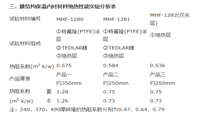 保溫內襯的涂層膜決定了膜材抗拉強度及撕裂強度及耐久性、阻燃性。由于內襯在室內風力、雨、雪、紫外線照射對他的影響很小,同時基本上不承受預張力(特殊要求除外)。所以材料性能要求對于外膜而言降低了很多。