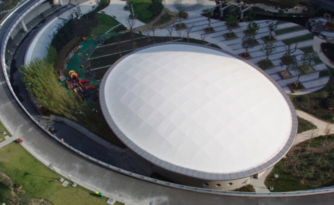 由于保溫內襯材料具有保溫、透光等性能,所以具有節能、生態、環保優越性,擺脫傳統材料大大降低了二次污染,而且由于采用新技術在現場只是張拉就位,施工速度很快,使施工現場也很環保。保證了建筑的景觀效果,以及膜結構的自然性又很體現區域建筑文化。