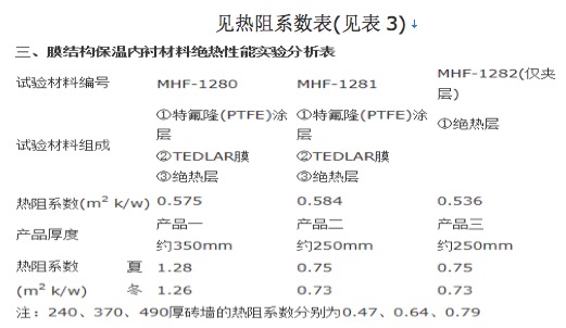 大跨度空間能耗問題是個大問題,由于膜結構保溫內襯具有很好的保溫工作(熱阻系數)很好,所以能節約熱能耗。(參考熱阻系數表)